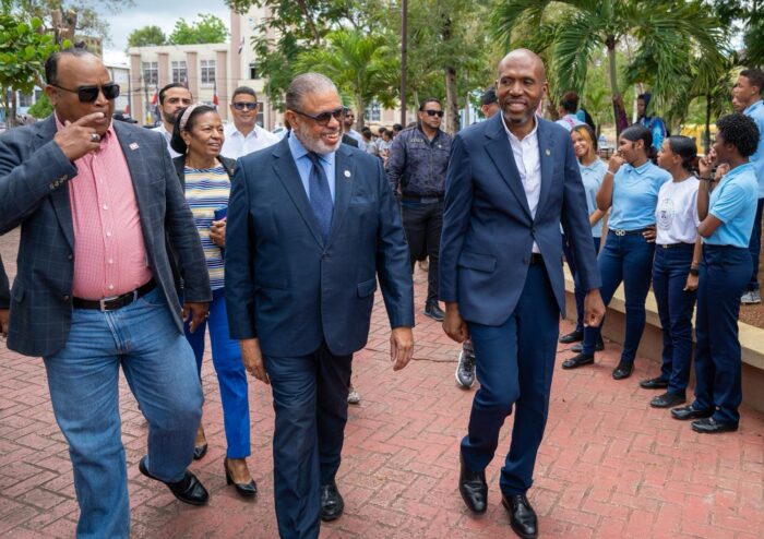 En el marco de su visita, Modesto Guzman junto al alcalde Eduardo Kery Metivier, dio un paseo por el parque central Juan Pablo Duarte para presenciar la feria del libro “La Romana 2025”, donde anunció el apoyo a dos jóvenes escritoras romanenses con la adquisición de sus libros para que estos sean distribuidos de manera gratuita por distintos centros educativos.